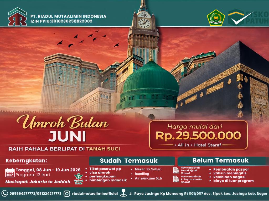 - 30 hari sebelum tanggal keberangkatan, dikenakan biaya pembatalan sebesar 25% dari harga paket